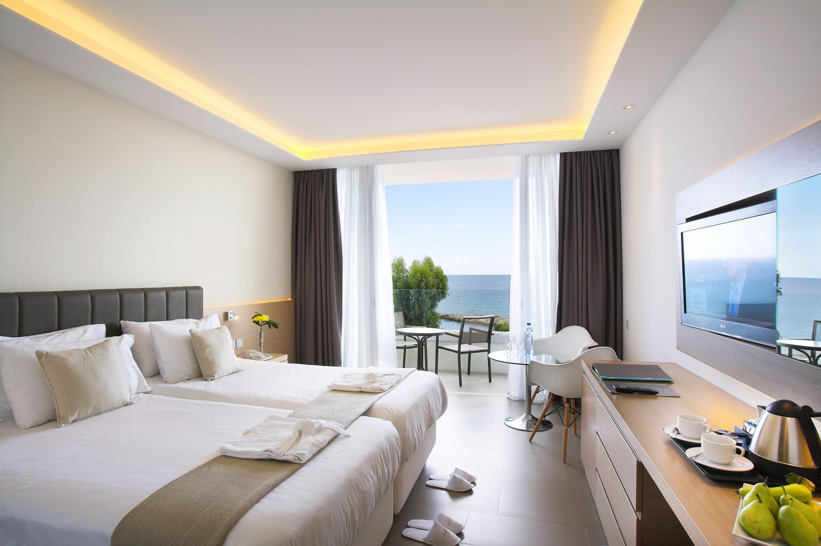 tieto elegantné izby Superior s nádherným výhľadom do vnútrozemia majú svieži moderný interiér a vlastný balkón. Sú svetlé a priestranné a môžu sa v nich ubytovať až 3 osoby. Užite si počas svojho pobytu v Limassole špičkové vybavenie a služby na špičkovej úrovni.
