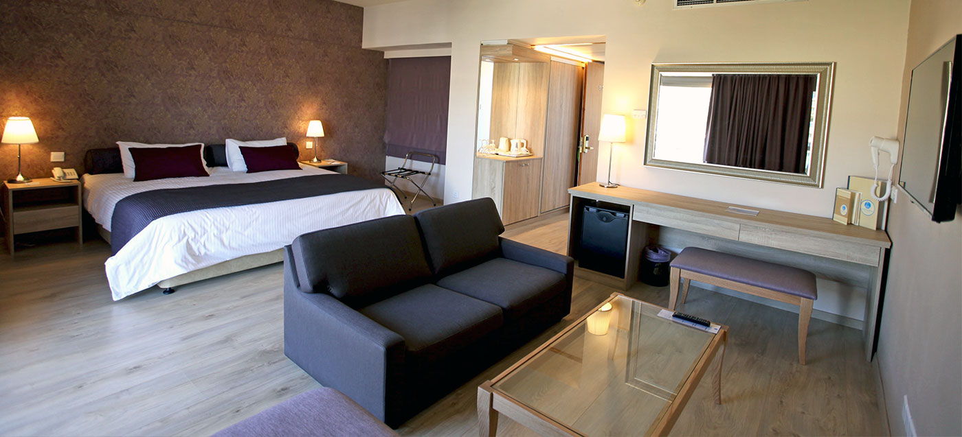 možnosť obsadenia 2 osobami. Elegantná a pohodlná, ideálna pre páry, ktoré hľadajú priestrannú izbu s úžasným panoramatickým výhľadom na Stredozemné more. Naša suita Executive má veľkú posteľ, toaletný stolík, obývaciu izbu s 2 pohovkami a stolom, stojan na batožinu, šatníkovú skriňu a priestrannú kúpeľňu s vaňou.
