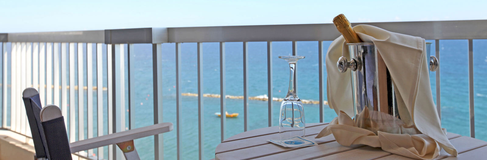 Všetky naše izby s výhľadom na more majú balkón s 2 stoličkami a stolom s výhľadom na nádherné Stredozemné more.