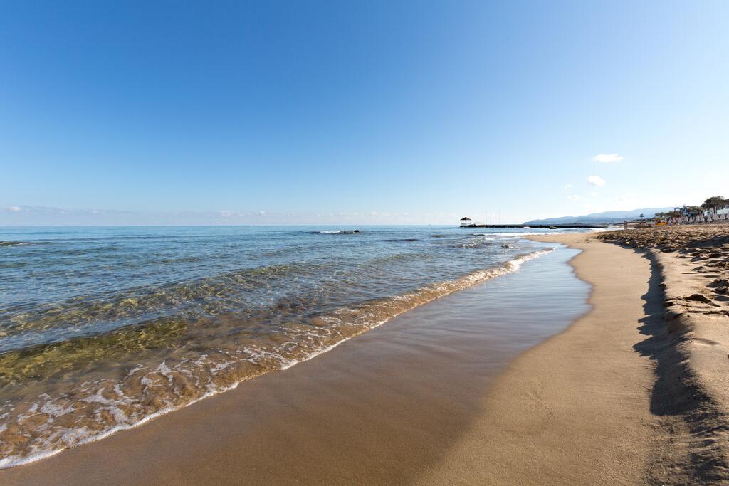Krásna piesočnatá pláž s kamenistými útesmi, pozvoľným vstupom do mora, krištáľovo čistou vodou a širokou ponukou motorizovaných a nemotorizovaných vodných športov (za poplatok - loďky, vodné bicykle, windsurfing, vodné lyžovanie, paragliding, motorové člny, jazdy na banánoch, šnorchlovanie, potápanie) sa nachádza priamo pred hotelom. Klientom sú k dispozícii ležadlá a slnečníky (zdarma).