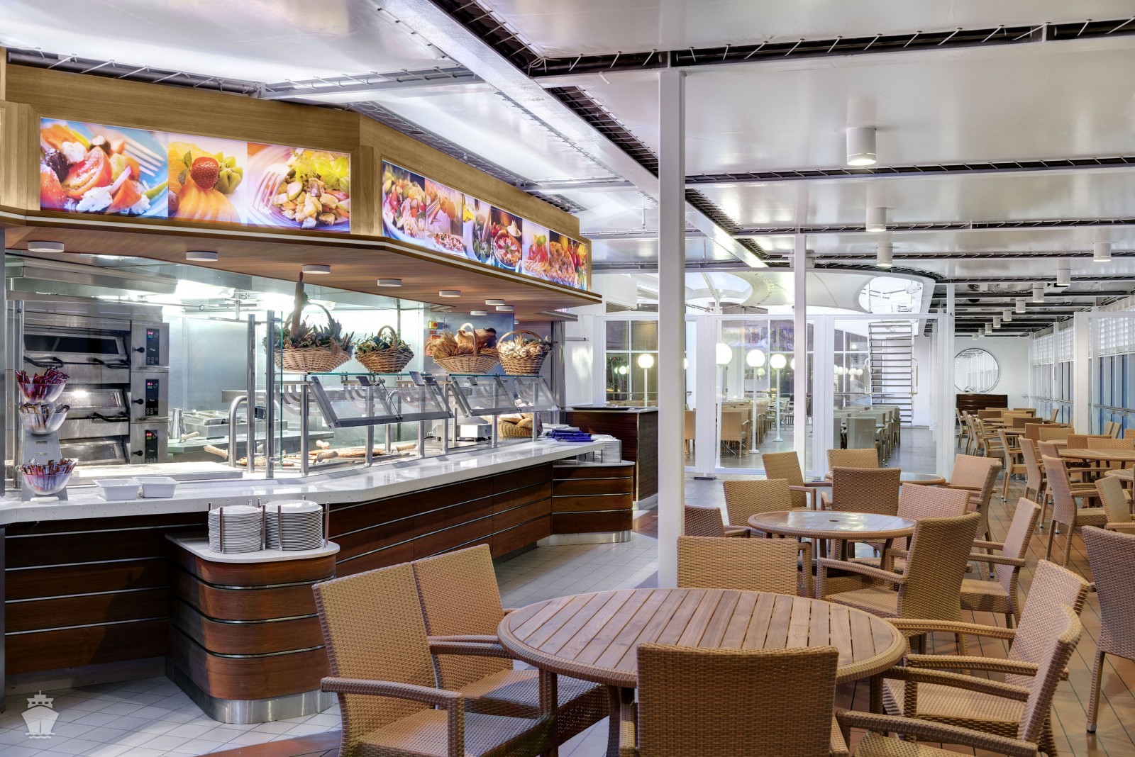 • Neformálna bufetová reštaurácia La Braserie (11. paluba) s kapacitou 320 hostí. Otvorená 20 hodín denne. Il Girasole (11. paluba oproti La Braserie): bufetová reštaurácia s kapacitou 450 osôb, otvorená na obed 12:00 - 17:30 a na večeru 19:00 - 22:00. K dispozícii je bar a automaty s vodou, džúsom a čajom. Zmrzlináreň La Gelateria (11. paluba): nie je v cene plavby. Otvorená od 10:00 do 18:00