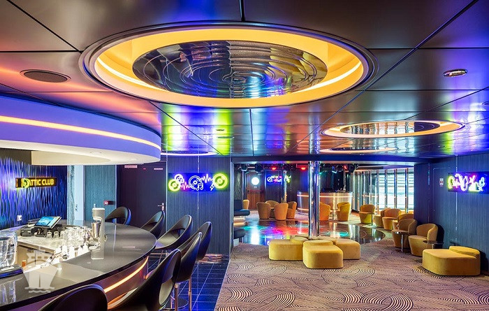 • Hlavný bazén (bazény, vírivky, ležadlá) - 4 bazény (vrátane 25-metrového bazéna Atmosphere - v noci osvetlený špeciálnym osvetlením, 10 m dlhý vnútorný bazén Bamboo, bazén Horizon v zadnej časti • lode - premenený na tanečný priestor v noci)