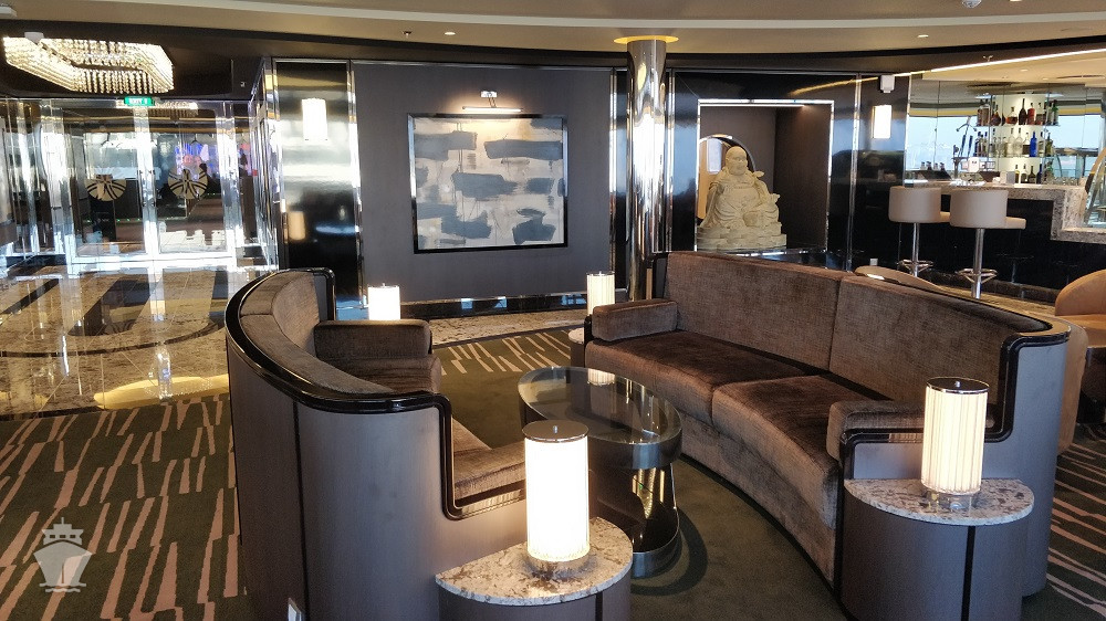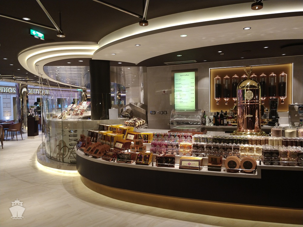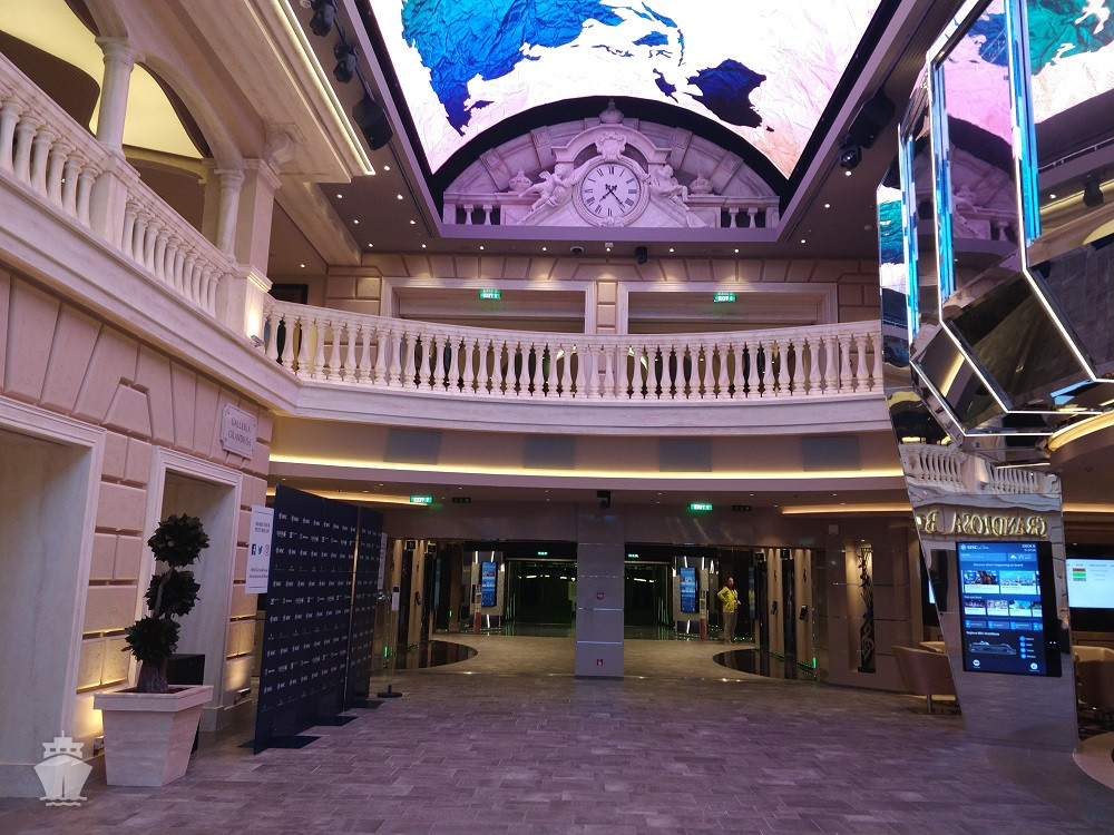 • Dvojúrovňová promenáda s reštauráciami, barmi a duty-free obchodmi, zastrešená 480 m² LED “digitálnou oblohou” s vizuálnymi show