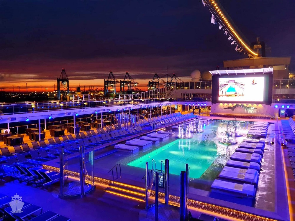 • 4 bazény vrátane 25 m bazénu Atmosphere so špeciálnym nočným osvetlením, vnútorného 10 m Bamboo a Horizon bazénu, ktorý sa v noci mení na tanečnú zónu. Vírivky.