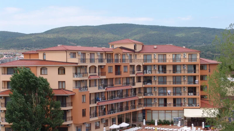 Apartmánový hotel Happy je uzavretý komplex a nachádza sa v pokojnej časti krásneho čiernomorského letoviska Slnečné pobrežie. Vonkajší bazén s minerálnou vodou je rozdelený pre dospelých a deti. Relaxačná zóna s bezplatnými ležadlami a slnečníkmi, trávnikmi. Recepcia je k dispozícií všetkým hosťom apartmánového hotela Happy.