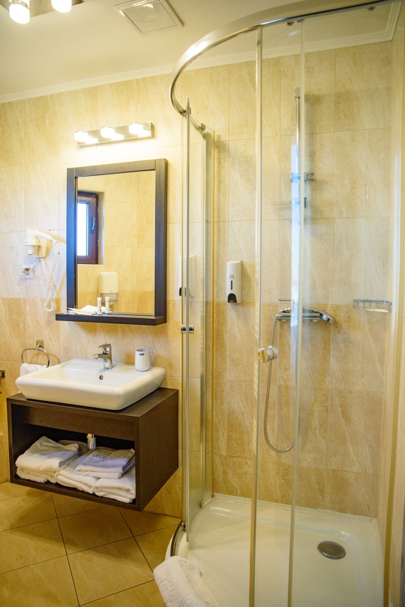 Všetky izby sú moderne zariadené, vybavené LED televízorom, telefónom, minibarom a vlastnou kúpeľňou so sprchovacím kútom, sušičom vlasov a toaletnými potrebami. Niektoré izby majú balkón a klimatizáciu.