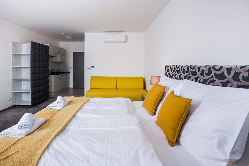 Ráno vás čaká bohatý bufet, plný domácich chutí – čerstvé pečivo, lokálne syry, ovocie a výber horúcich nápojov, ktoré si môžete vychutnať v slnečnej jedálni, alebo na vonkajšej terase. Po dni strávenom v meste či na cyklotúre je skvelým zakončením večer v útulnej vínnej pivničke, kde sa pri poháriku moravského vína ľahko zabudne na čas.