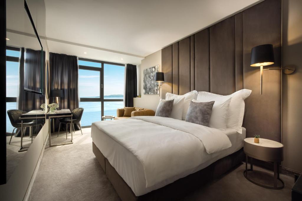 Hotel ponúka širokú škálu izieb, od štandardných dvojlôžkových až po priestranné luxusné suity. Každá izba je zariadená s dôrazom na komfort a eleganciu – kúpeľňa so sprchou/WC/toaletnými potrebami/sušičom na vlasy, klimatizácia, LCD TV, minibar, trezor a bezplatné Wi-Fi sú štandardom. Mnohé izby disponujú balkónom alebo terasou s panoramatickým výhľadom na Kvarnerský záliv, čo robí pobyt ešte príjemnejším.
