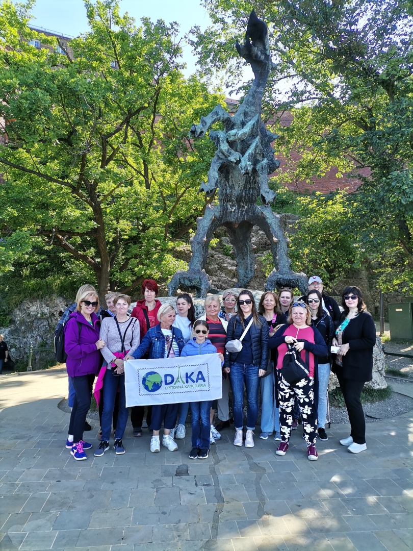 Po príchode do Krakowa návšteva hradného areálu Wawel, prehliadka Kráľovskej korunovačnej katedrály sv.Stanislava a Václava, hradného nádvoria a nádvoria Kráľovského zámku. Vypočujete si príbehy o kráľoch a kráľovnách ktorí tvorili poľské dejiny, ale aj tajuplné legendy o drakovi a svätých kameňoch.