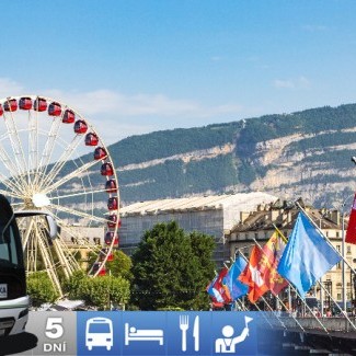 Po raňajkách bude nasledovať presun do Ženevy, ležiacej na brehu Ženevského jazera s úžasnou scenériou Álp. Uvidíte tu Katerálu sv. Petra, z ktorej veže je nádherná vyhliadka na celé mesto. A neujde Vám pohľad na fontánu Jet d´eau, striekajúcu do výšky 140 m rýchlosťou 200 km/hod., ani neopakovateľná atmosféra mesta. V poobednajších hodinách presun cez Švajčiarsko a odchod na Slovensko.