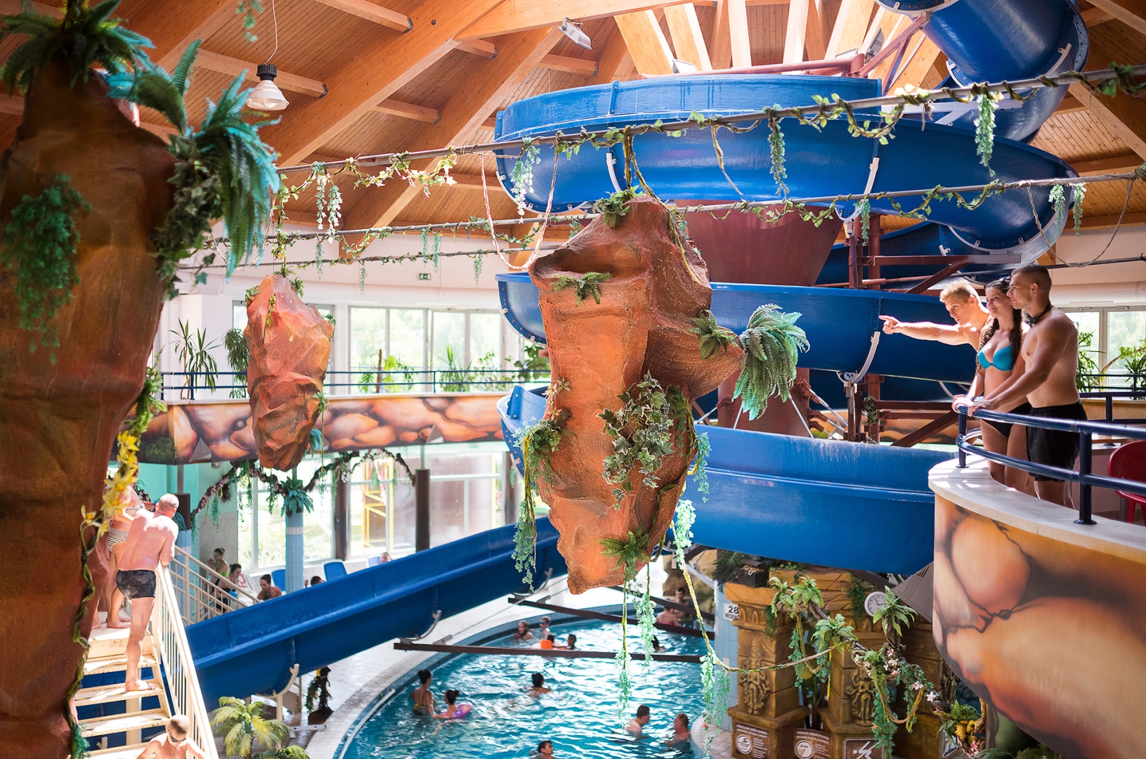 Celoročne prevádzkované kryté zážitkové kúpele ponúkajú rozprávkový detský svet pre najmenších, zatiaľ čo vo vnútorných a vonkajších bazénoch s liečivou vodou, ktoré sú vybavené vzduchovými masážnymi ležadlami a bazénovými chrličmi, môžu hostia oddychovať napríklad pri skvelom kokteile. Zážitkový svet je vždy plný smiechu – tobogany, bazén s vlnami a zrýchľovací kanál zaručujú skvelú náladu. Saunový svet s jedinečnou atmosférou ponúka fínsku, aromatickú a parnú saunu, ako aj saunu bez potreby nalievania vody. Navyše, vo fínskej saune čakajú hostí pestré programy. Kúpele ponúkajú kvalitnú relaxáciu s pocitom neviazanej slobody pre rodiny aj individuálnych návštevníkov.