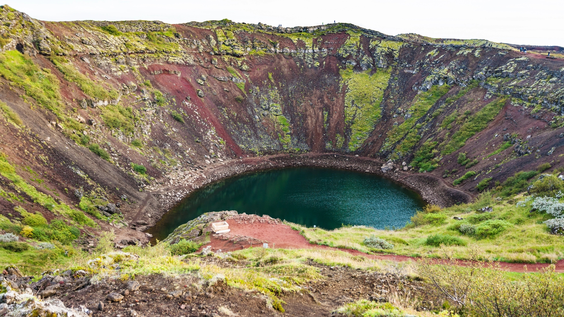 Plný zážitkov sa sopečnou krajinou vydáme naspäť do hlavného mesta Reykjavík, cestou nás ešte bude čakať posledná zastávka a to kráter Kerid. Ohromujúce kráterové jazero s nádhernou modrou, tyrkysovou farbou doplnenou o unikátnu vulkanickú červenú horninu, fotozastávka pri kráteri prípadne v rámci časových možností prechádzka okrajom krátera.
