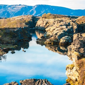 národný park Thingvellir, ktorý je miestom vzniku najstaršie fungujúceho parlamentu na svete. Zaujímavá je aj otázka či stojíme teraz v Európe alebo už v Amerike? Národný park je totiž miestom kde sa viditeľne na zlome stretávajú tektonické dosky – severoamerická a euroázijská doska a teda „prechod medzi kontinentmi“ je možný pomedzi pukliny, rokliny a údolia. Presun na