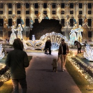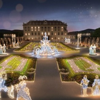 Schönbrunnu, kde najprv navštívite vianočné trhy a potom zažijete veľkolepú nočnú prechádzku cisárskymi záhradami Schlosspark Schönbrunn s fascinujúcimi svetelnými prvkami a barokovými umeleckými dielami s cisárskymi svetlami! Svetelné inštalácie sú vytvorené exkluzívne pre svetoznámy zámok Schönbrunn, ktorý je zapísaný na zozname svetového dedičstva UNESCO. Baroková elegancia a súčasné svetelné umenie sa spájajú do fascinujúceho zážitku. Uvidíte cisársku barokovú eleganciu v podaní pôsobivých svetelných inštalácií ako nikdy predtým. Obdivujte opulentné svetelné prvky pozdĺž okružnej cesty, ktorá spája umenie a historickú nádheru a je vytvorená exkluzívne pre túto legendárnu lokalitu svetového dedičstva UNESCO. Objavte nový pohľad na kultúrne dedičstvo