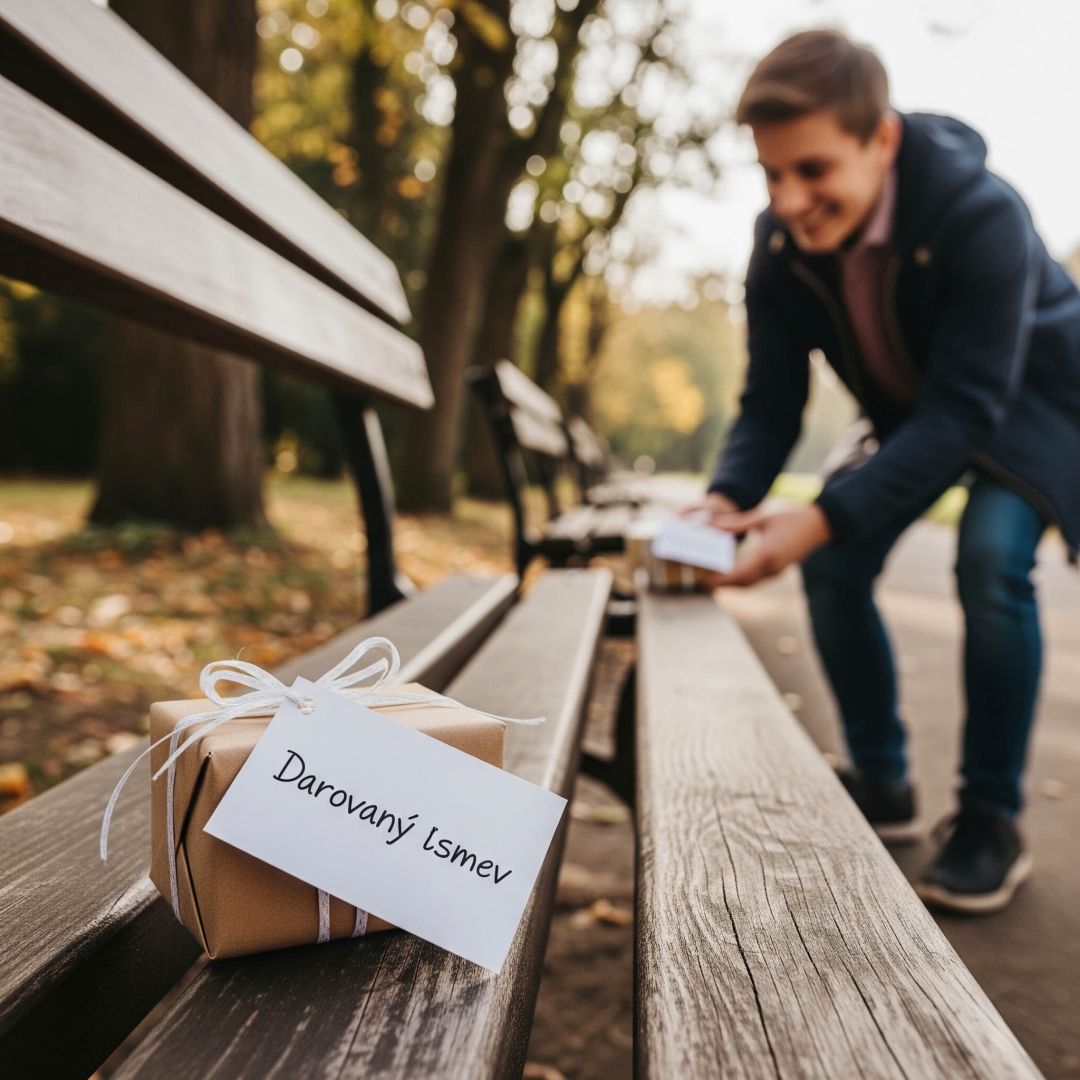 Jej princíp je jednoduchý – necháme kdekoľvek nejakú vec s odkazom. Ten, kto ju nájde, sa s tým pochváli v skupine a vyčarí úsmev aj mne ako darcovi, aj tomu, kto darček našiel. A takto spoločne rozdávame desiatky úsmevov ďalej.