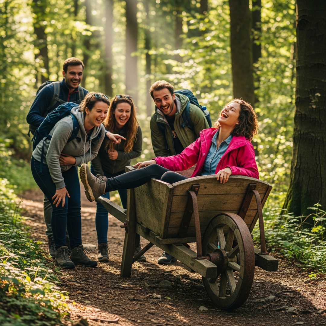 Poznávačka v prírode – super partia. Popri cestičke veľký starodávny fúrik, ktorý v minulosti slúžil na sťahovanie dreva z hôr. „Alenka, šup dnu, či ťa odvezie!“ Dnu sa dostala ako-tak, ale vonku… to bolo na popukanie. Pod brehom sa ostatní ľudia išli ušúľať od smiechu. Smiech lieči ❤. DAKA – s vami cestujeme, hlavne na poznávačky, a vždy natrafíme na úsmevnú super partiu.