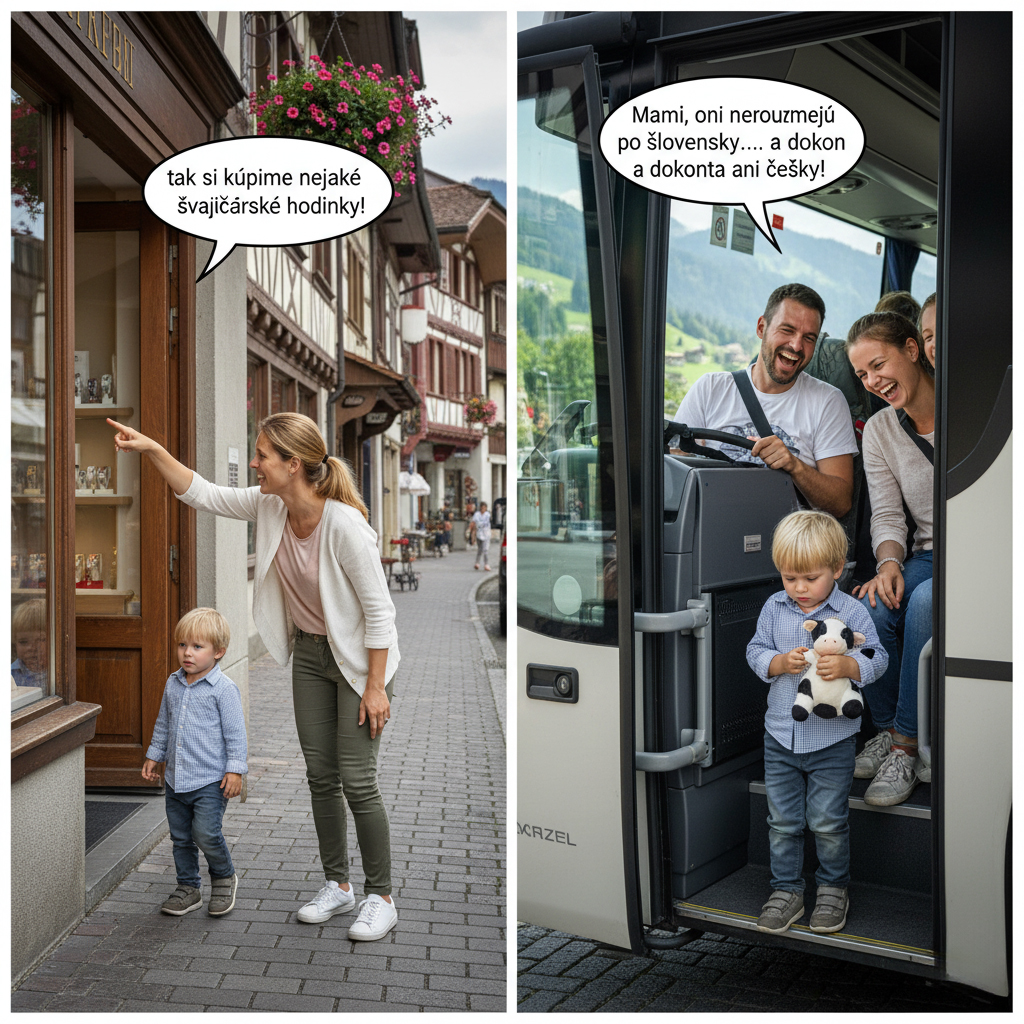 Keď boli naše deti malé, išli sme autobusovým zájazdom aj cez Švajčiarsko. Zo srandy som povedala, či mi tam nekúpia nejaké dobré hodinky. Môj malý syn vošiel do obchodu, že to preverí. O chvíľu vyšiel sklamaný a hovorí: